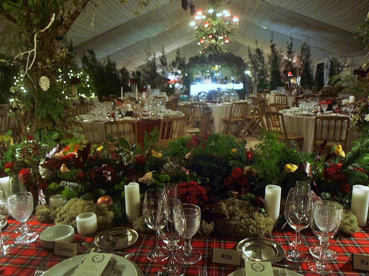 Um casamento que parecia um autêntico conto de Natal. Desde a decoração à comida tudo tinha um toque natalício. o padrão vermelho escocês, os pinheiros de Natal, o azevinho, as luzes tudo tornava a quinta acolhedora e a parecer que estávamos num bosque.