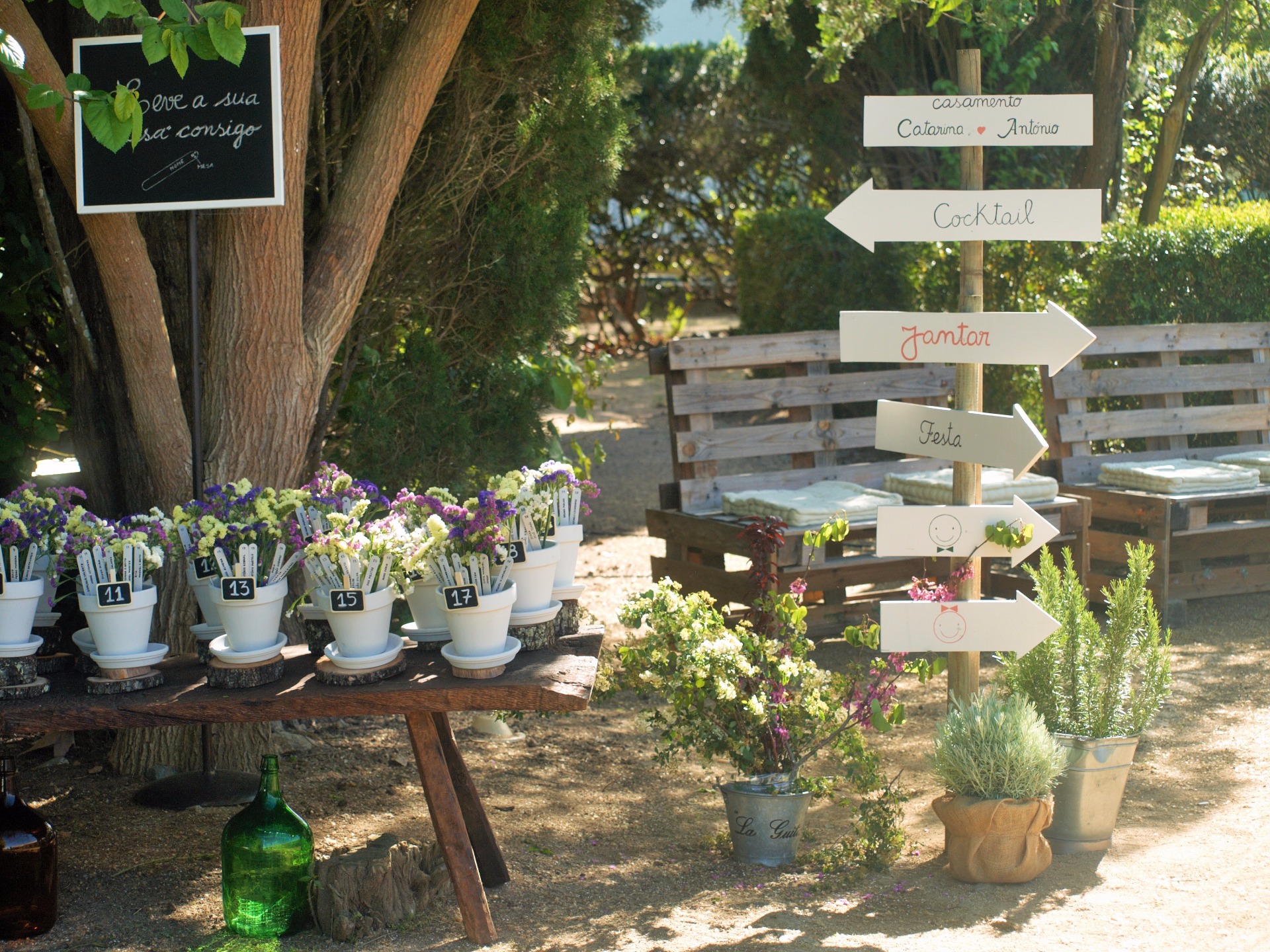 Um casamento campestre decorado com paletes e caixas de fruta, flores do campo e promenores bem rústicos que lhe deram um aspecto romântico e ao mesmo tempo um ar fresco a saber a Verão.